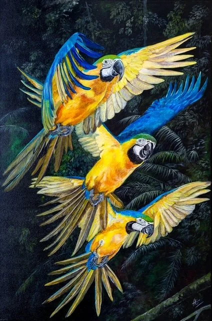 Trabalhando principalmente com acrílico e pastel, busco capturar a essência do meu tema e espero compartilhar não apenas a beleza do mundo natural, mas também a importância de preservá-lo e protegê-lo para o futuro.