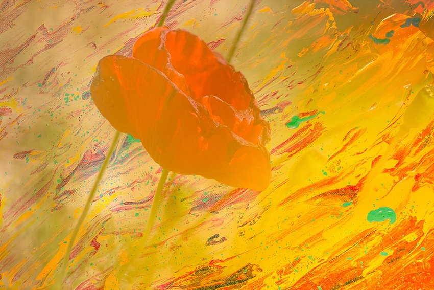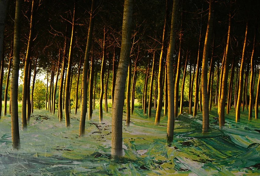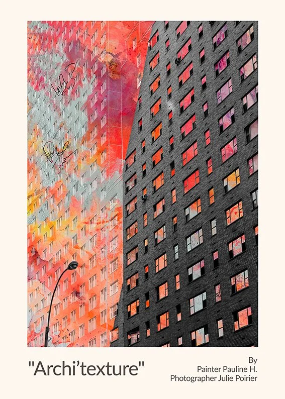 Having always evolved in an artistic environment, she explores the links between photography and painting alongside a painter friend. This encounter marks the beginning of a mixed media project: high-definition shots of abstract paintings are digitally integrated and assembled with her photographs.