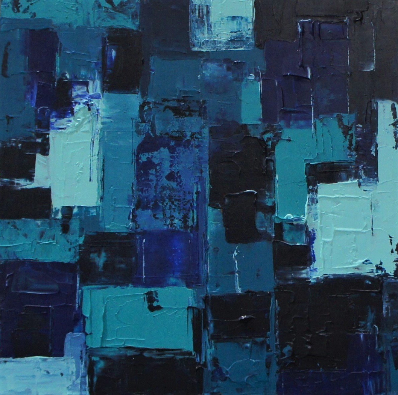 Each golden square evokes a lit window, a fragment of life, a story unfolding in the heart of this vibrant metropolis. The palette knife texture adds relief, making the light dance and capturing the city’s unique energy.